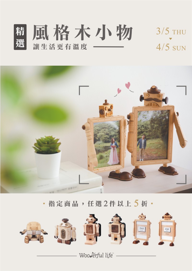 ✨ 活動方式:凡活動期間於 Wooderful life 直營門市任選 2 件以上指定款式風格木小物,即可享 5 折優惠價,數量有限,售完為止。