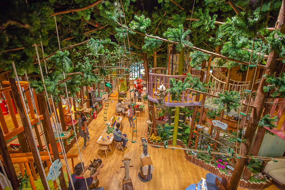 涵蓋325平米的大空間,寬敞環境、溫潤木色,以小動物點綴,宛若走進童話森林裡。