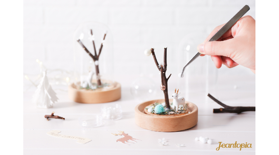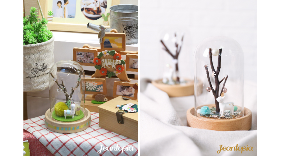 在底座鋪上草原,用珠珠、毛球點綴雪花,一根枯木獨立雪景之中,襯托冬日靜謐寂寥。輕輕蓋上玻璃罩,將所有祝福完整封存,送給對方一份永恆不變的童話願景。