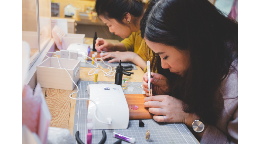 Jeantopia covers nearly 1,000 types of diversified components designed by our professional and experienced design team. You are able to select any materials and DIY base here for creation. A variety of handmade tools are provided. The service staff will answer your questions and give instructions. Simply sit down in the handmade area and you can realize your design dreams immediately!